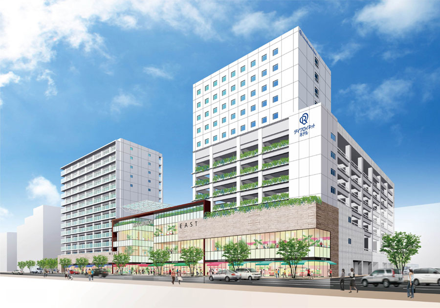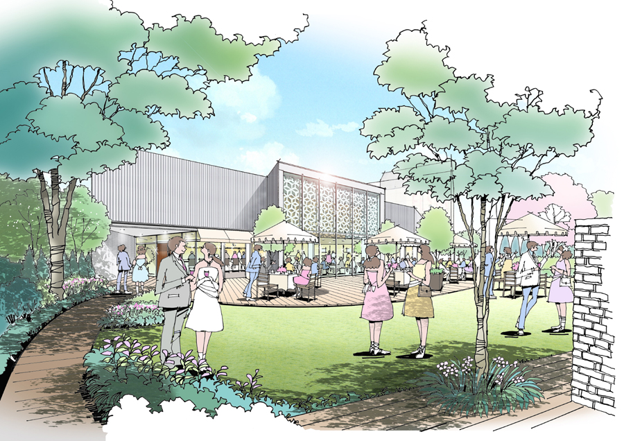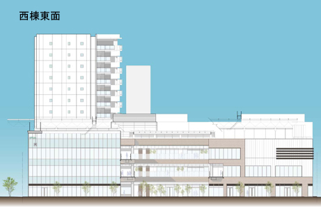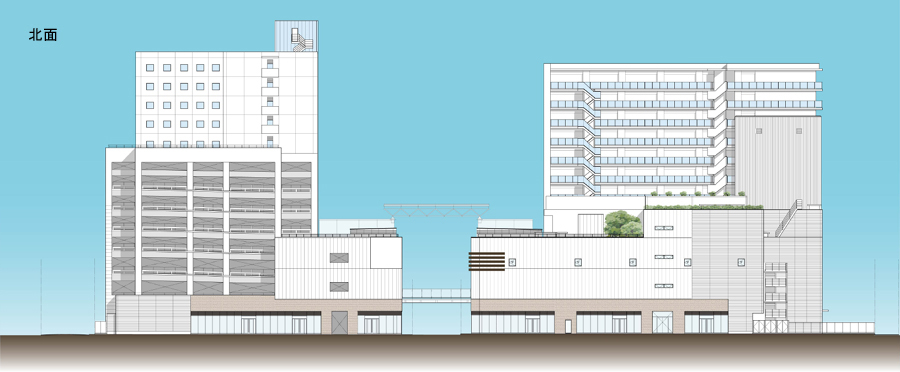 | 南東方向から見た全景です。 | アーケードは今までの約2倍の高さ(18m)になります。 |